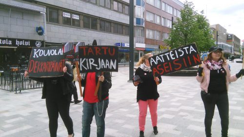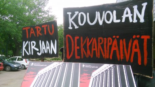 Kova huuto käy, kun dekkaripäivien ”mielenosoitus” paraati raikaa pitkin katuja. Tämä paraati mainosti tulevan viikonlopun dekkaripäivät -tapahtumaa. Paraati kulki Kouvolan kirjastolta Salpausselänkadulle ja sieltä Manskin kävelykadulle. Kävelikadulta kulkue eteni rautatieasemalle, jossa todettiin, että Helsinkiin ei tarvitse mennä. Kouvolankadulta matka vei Torikadun kautta torille, jossa paraati pysähtyi hetkeksi levittämään dekkaripäivien jännittävää sanomaa. Manskin kävelykadun kautta Salpausselänkadun toista puolta pitkin paraati päätti reittinsä Kouvolan teatterille, jossa tapahtuma tulee olemaan.