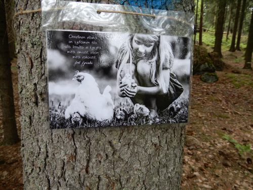 Mielipolun varrelle oli kiinnitetty Joel Jyringin kauniita runoja elämästä.
